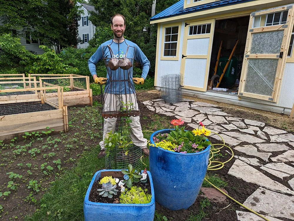 This is a reenactment of the moment Lucas said he didn’t want a bench with a big butterfly on it because he didn’t “want the yard to be princessy.” He didn’t realize where he was standing. I came close to death laughing. (That’s a dress form he’s behind.)